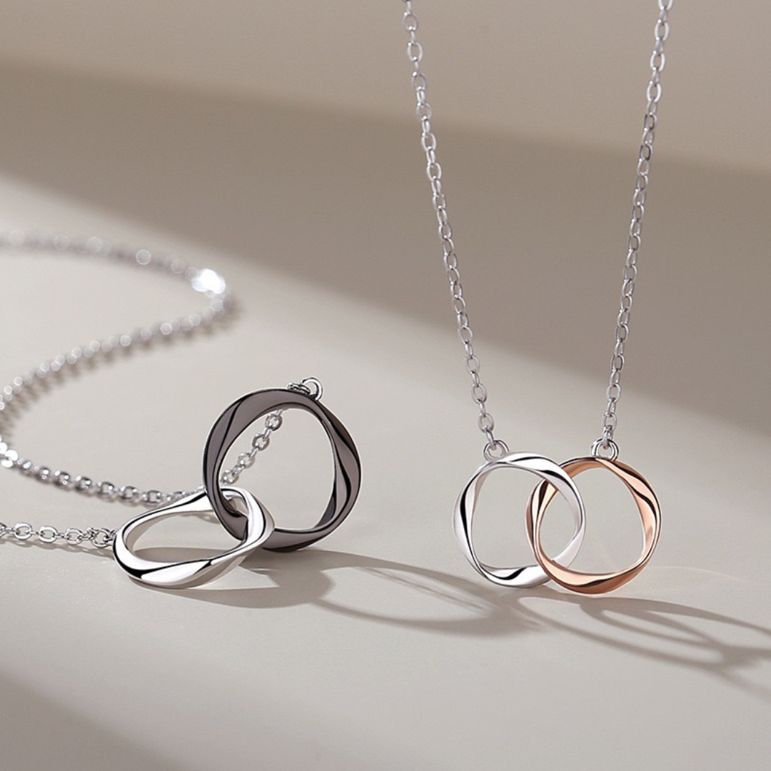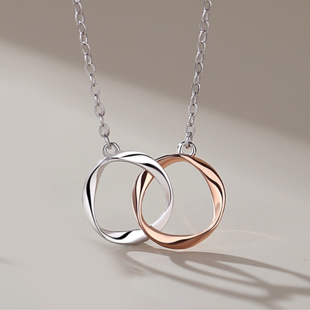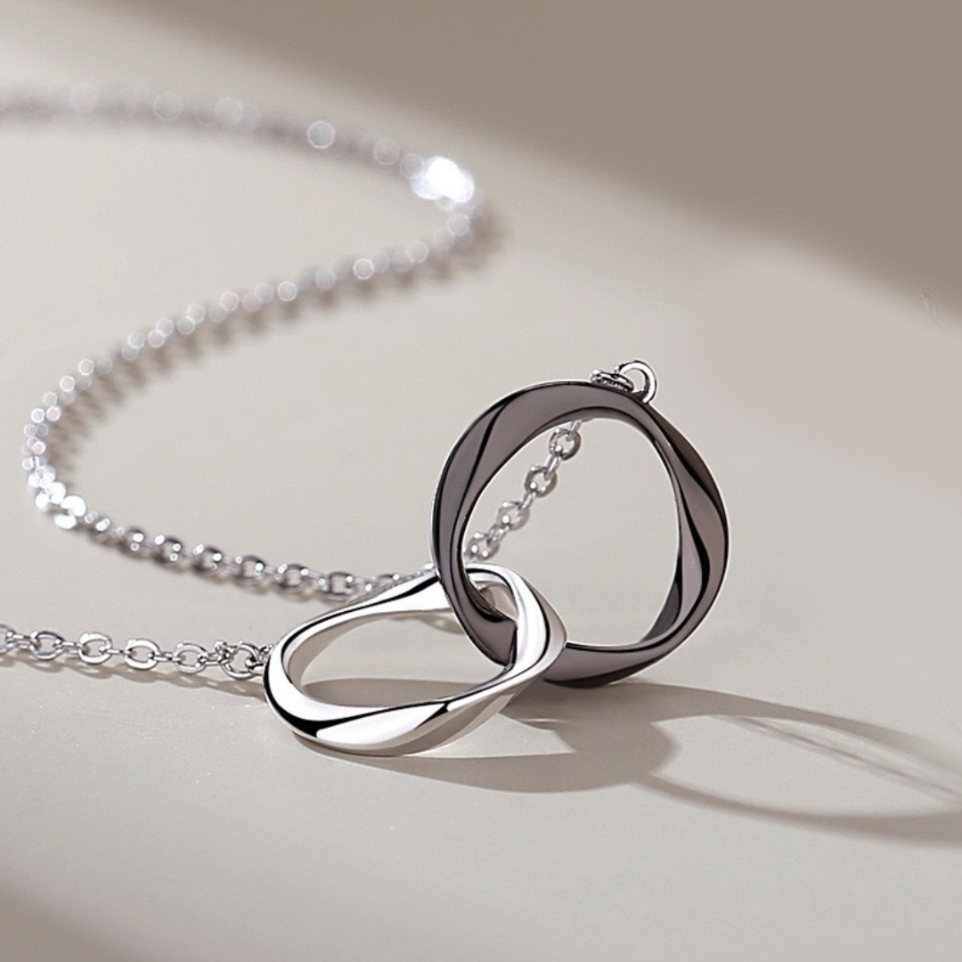 途切れることのないメビウス環は、ふたりの愛を映す永遠の象徴。重なり合う環が「どんな時も共に歩む」という誓いを語り、孤独を遠ざけます。日常の小さな瞬間にも、記念日の特別な時間にも、胸元で静かに輝き、変わらぬ絆をそっと守り続けます。