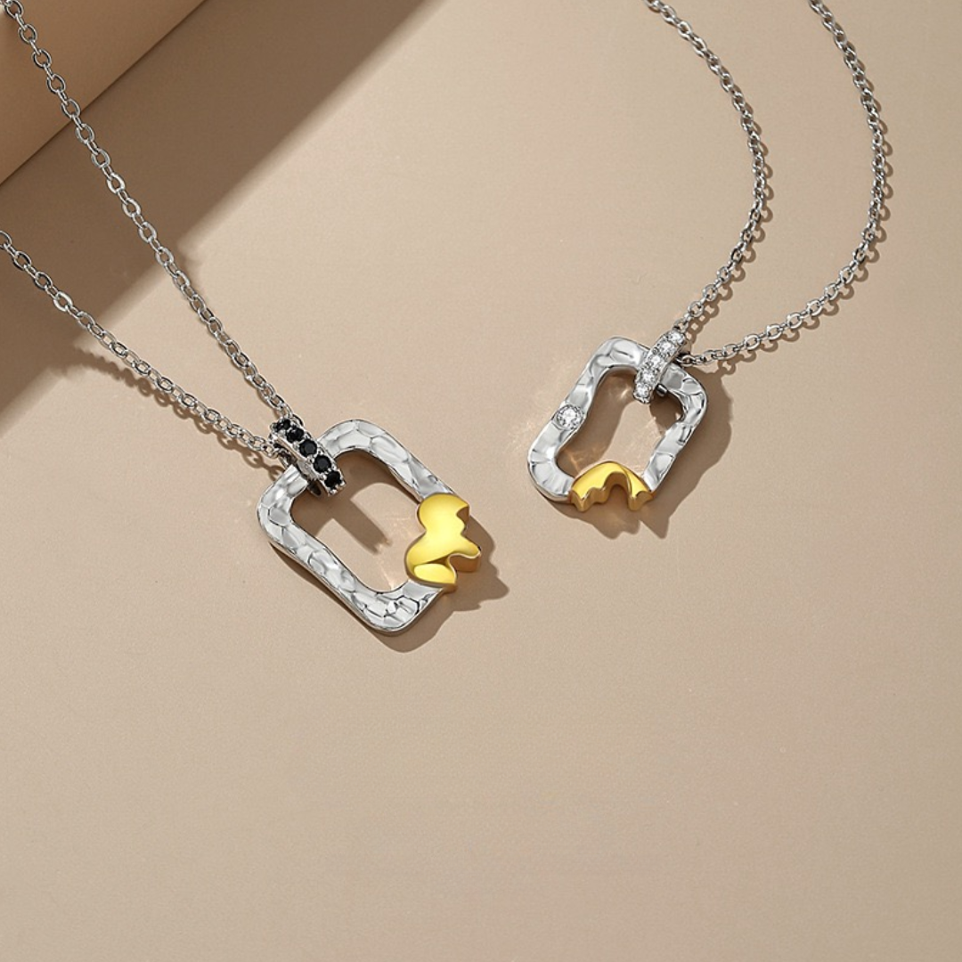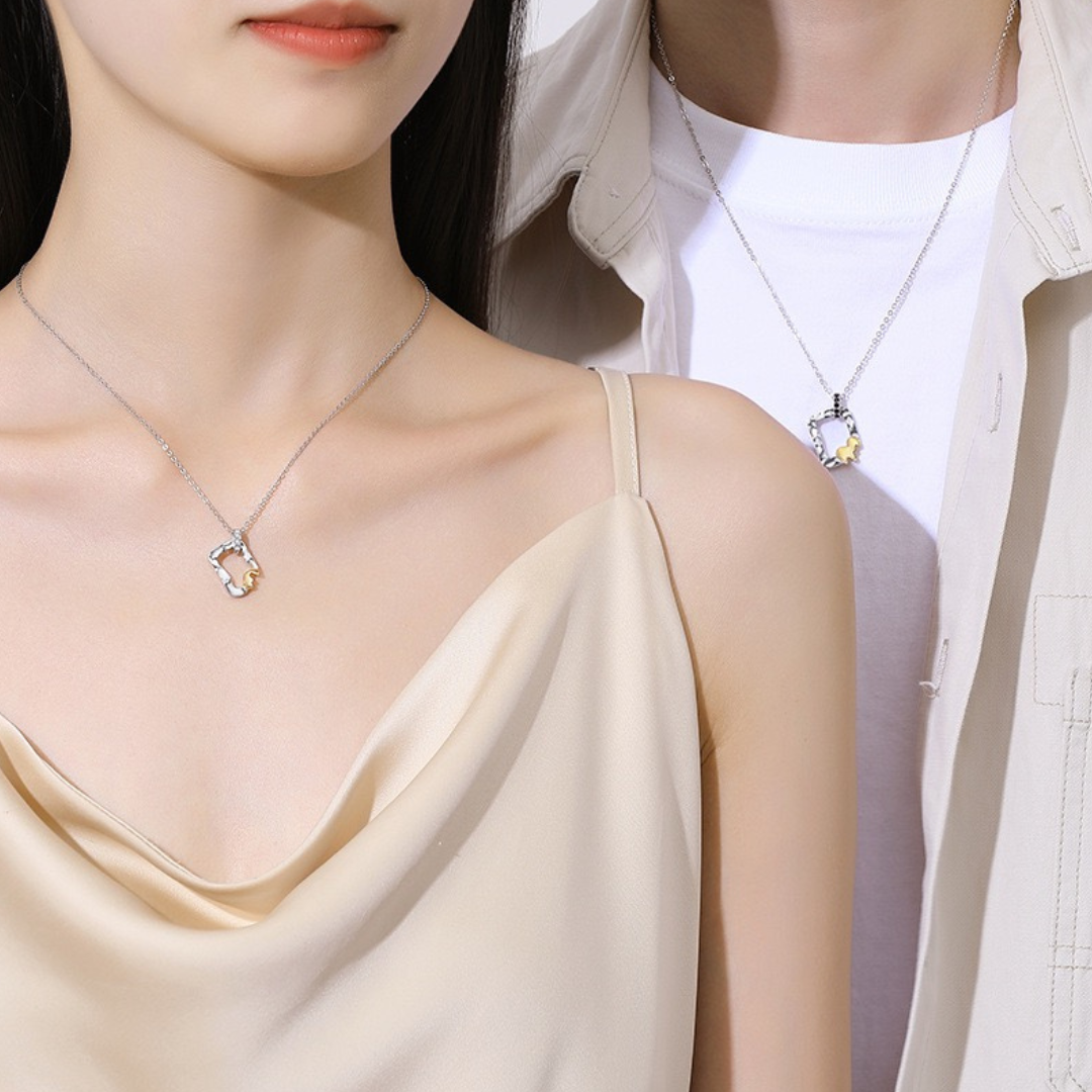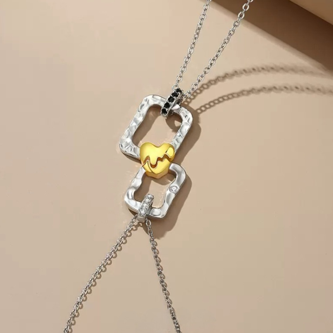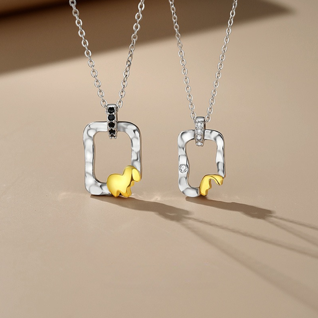 ひとつでは未完成のカタチも、ふたりが寄り添うことで心を結ぶハートに。「どんな時も離れない」という想いを込めて、胸元で輝き続けます。日常の何気ない瞬間も、記念日の特別な時間も、永遠の絆を語り継ぐふたりの証です。