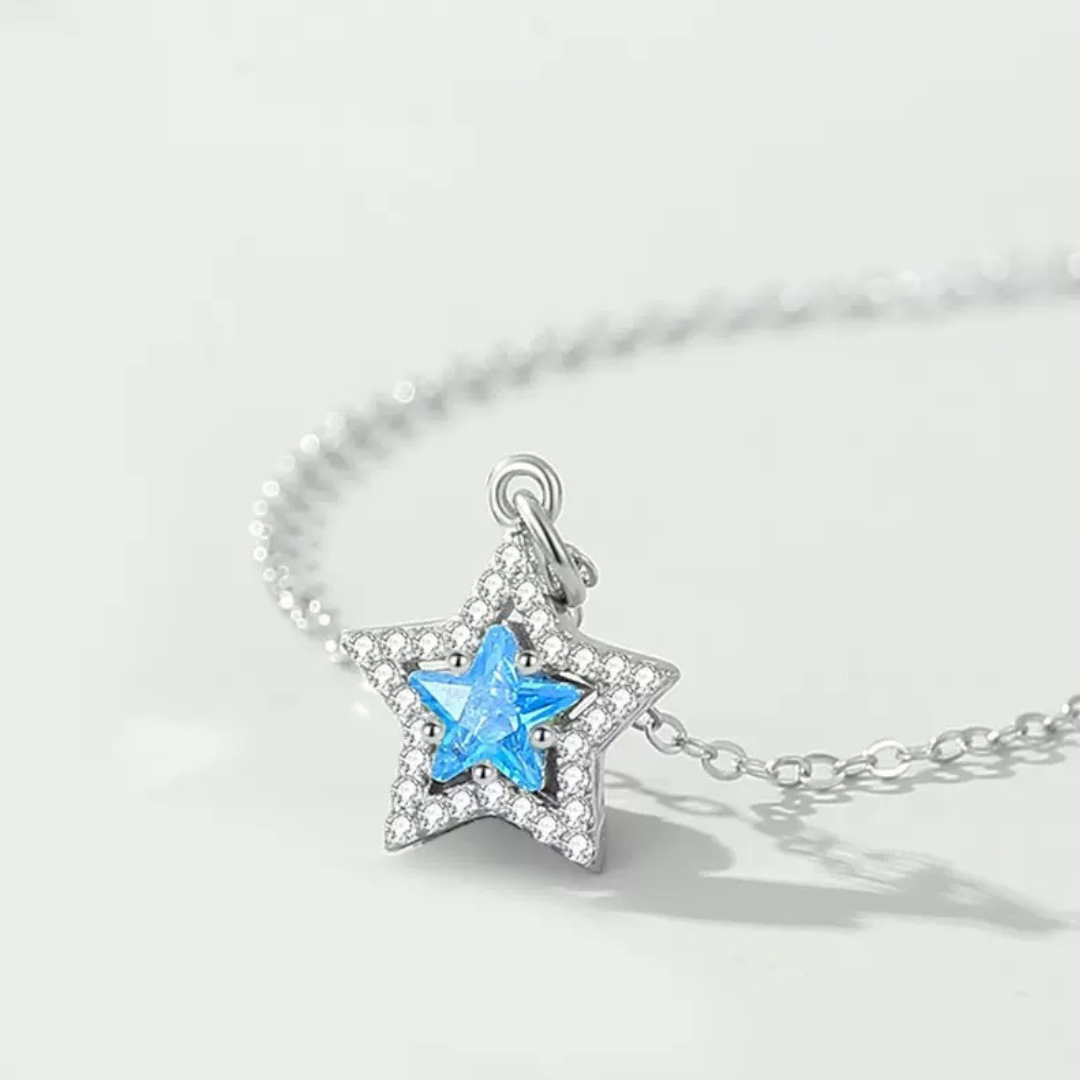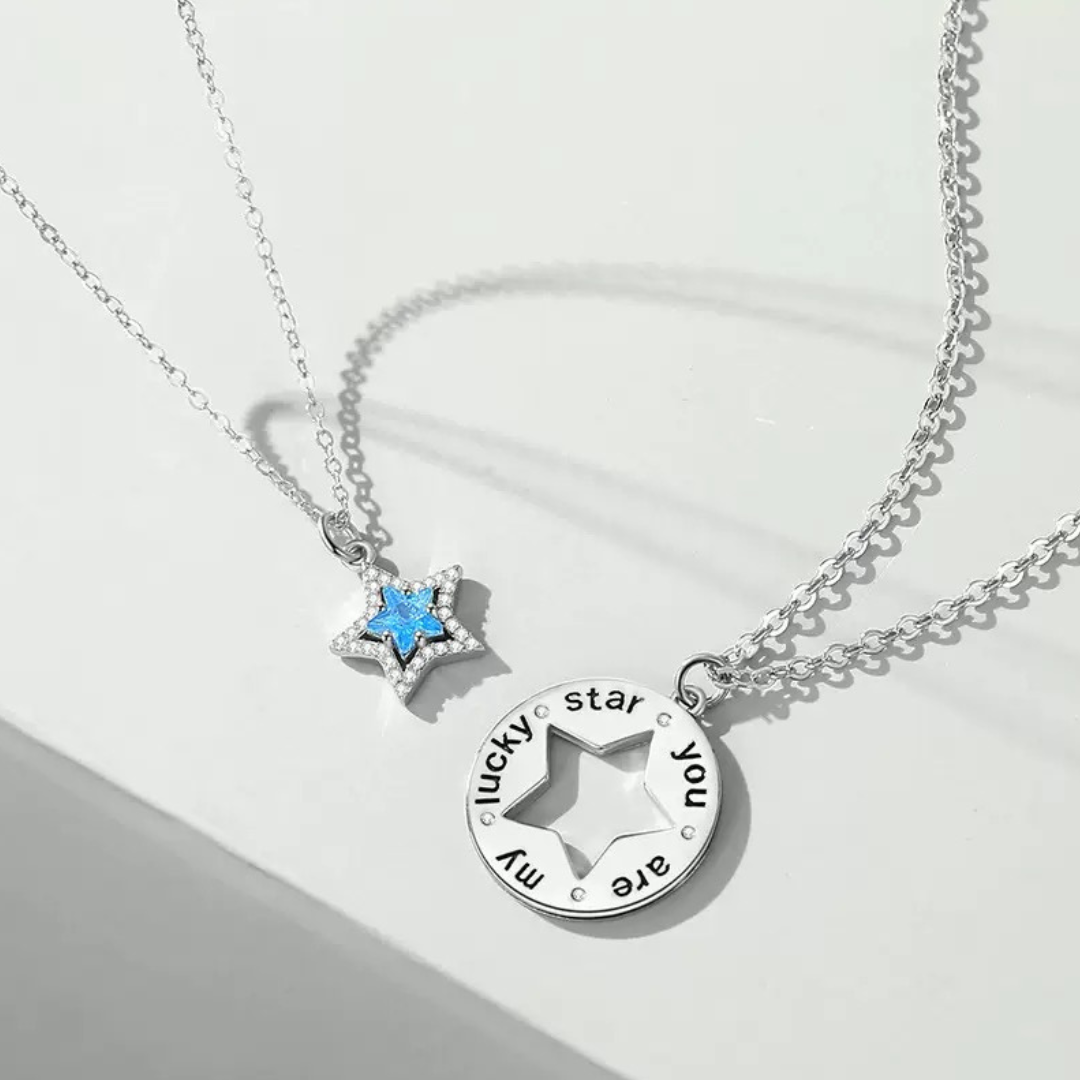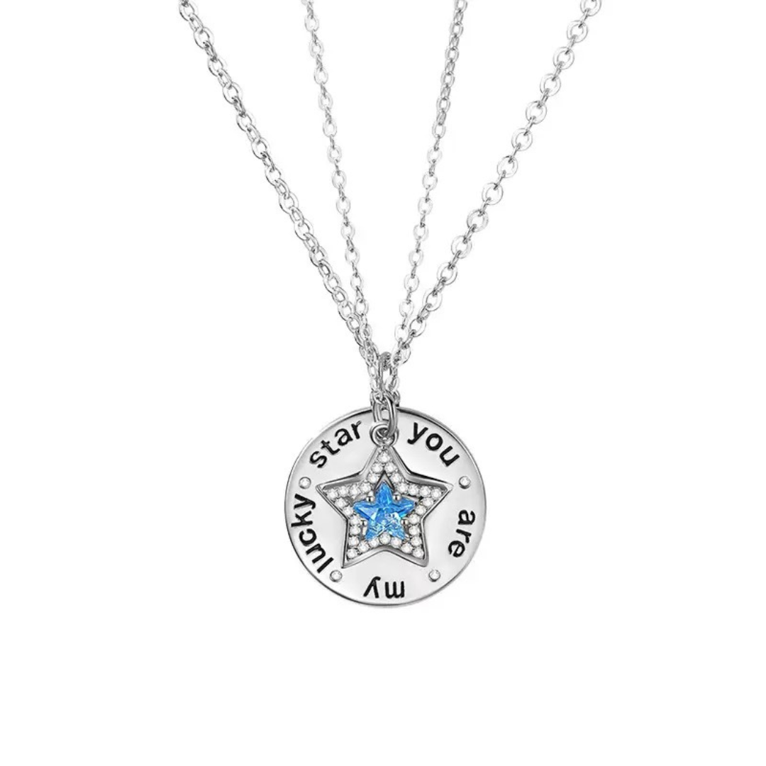 どんな夜空よりも、あなたに出会えたことが私の奇跡。青く輝く星は、日常にそっと幸運を灯し、どんな時も心の中で輝き続けます。ふたりのペンダントは重なり合うことでひとつとなり、「あなたは私のラッキースター」という想いを永遠に刻みます。記念日にも、何気ない毎日にも寄り添う、特別な証です。