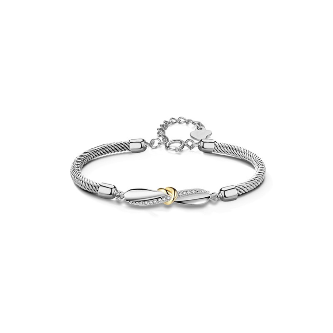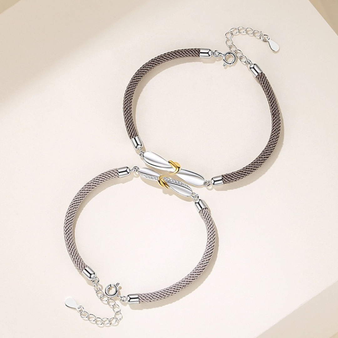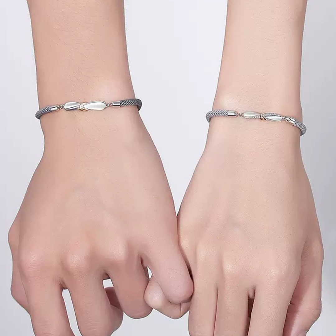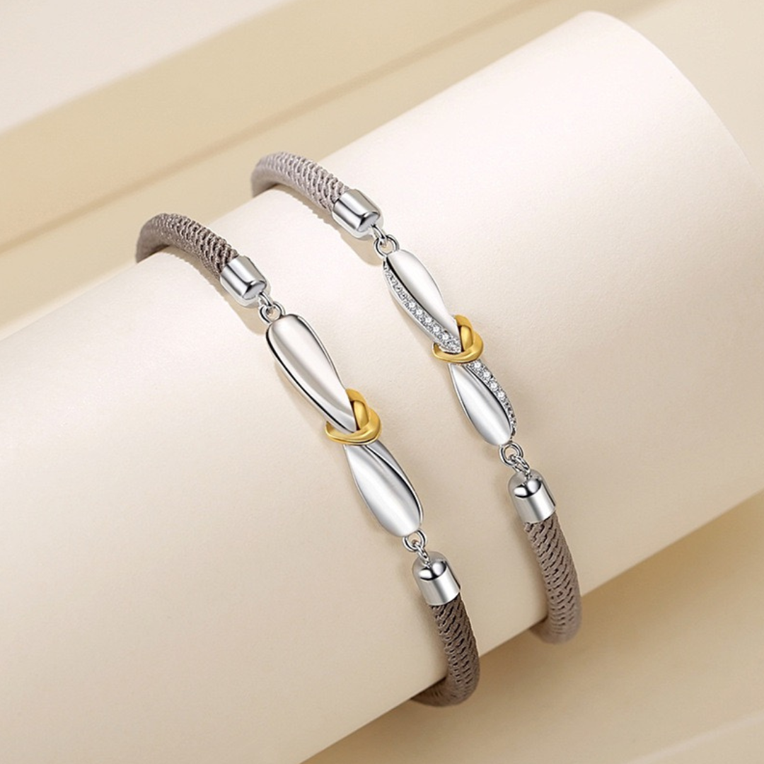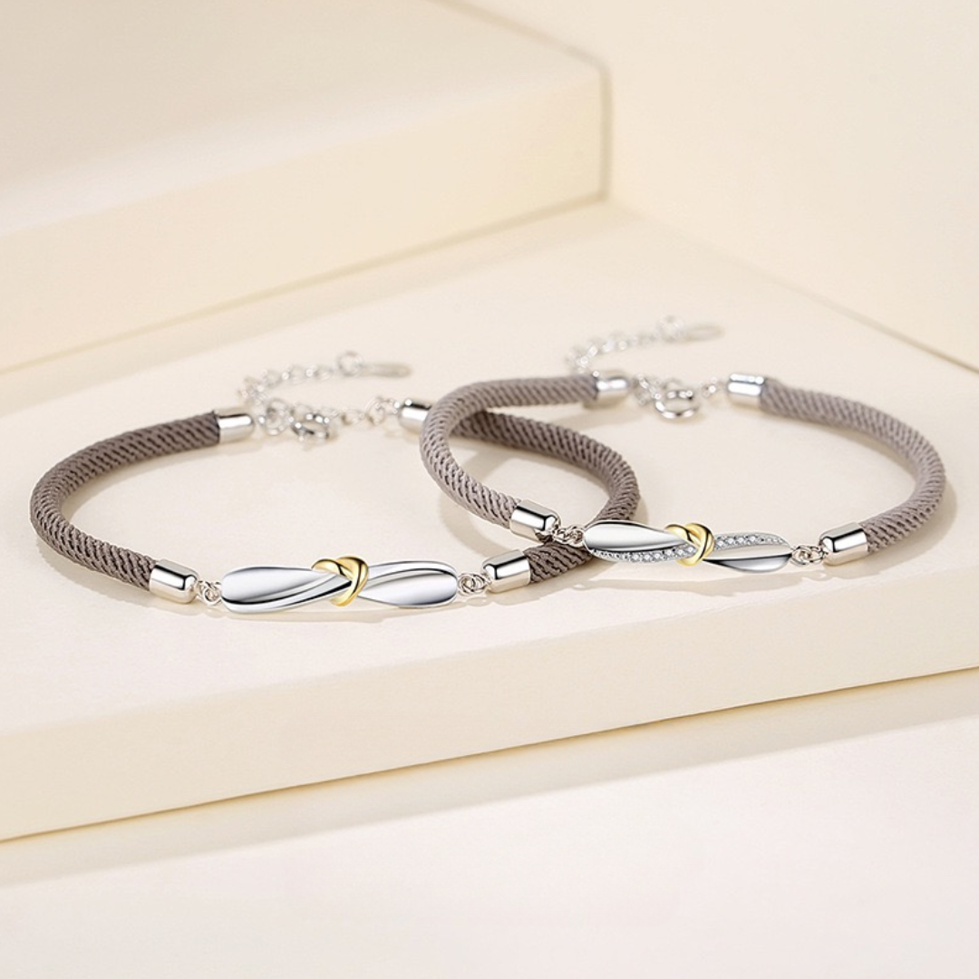 ふたりを結ぶ結び目は、永遠の絆を象徴する。離れていても、心は常に寄り添い合い、支え合う。手首で輝くこのデザインが、静かに未来への誓いを語る。日常にも特別な瞬間にも、変わらぬ想いを刻むペアブレスレット。