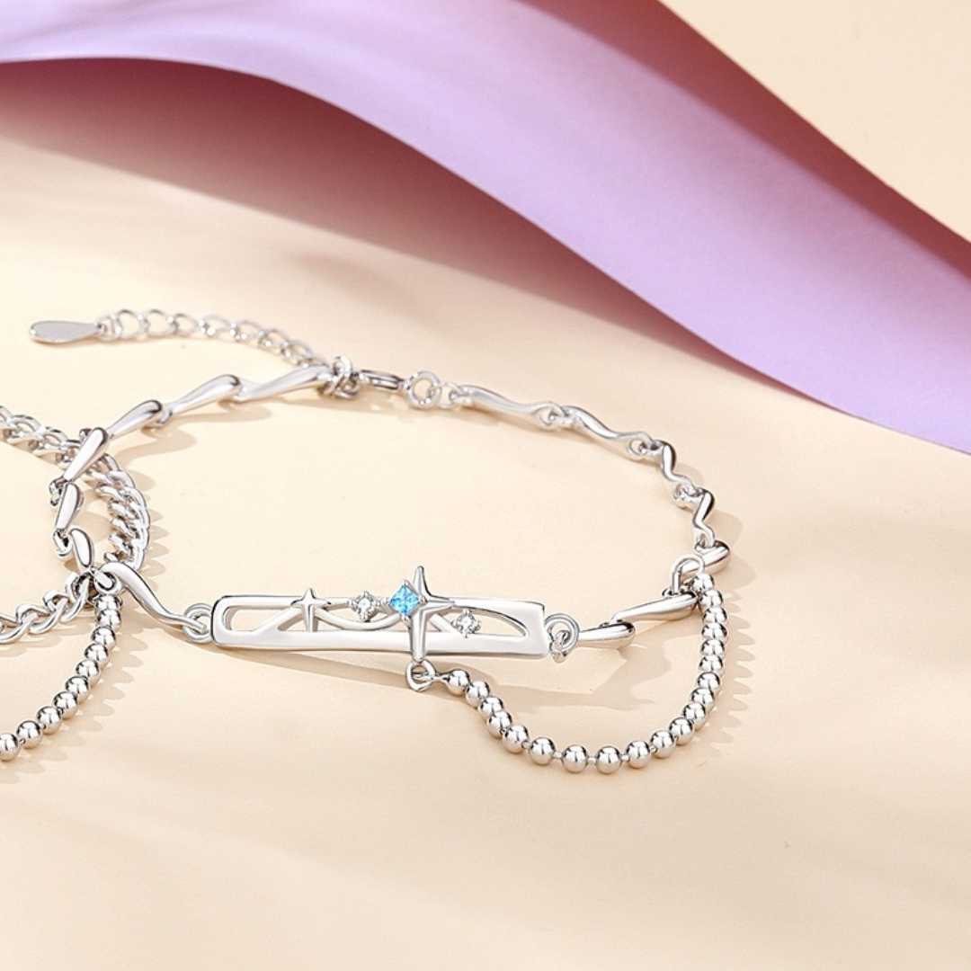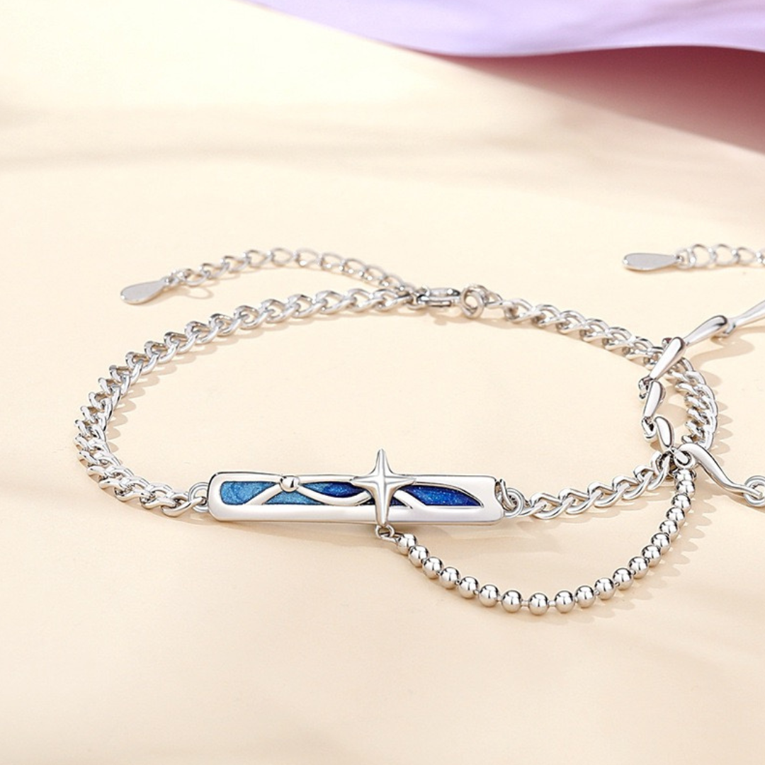 - シルバーの輝きとブルーの彩りが調和し、手元に幻想的な印象を与えます。。