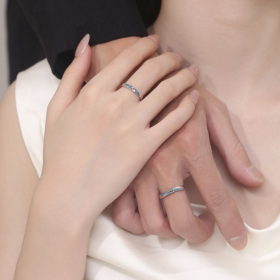 ふたりの指に流れる星の河が、銀河のようにひとつに繋がる。満天の星に誓うように、この想いは永遠に続き、どんな時も寄り添い輝きます。夜空を渡る光のように、あなたと共に歩む未来を描いたペアリングです。