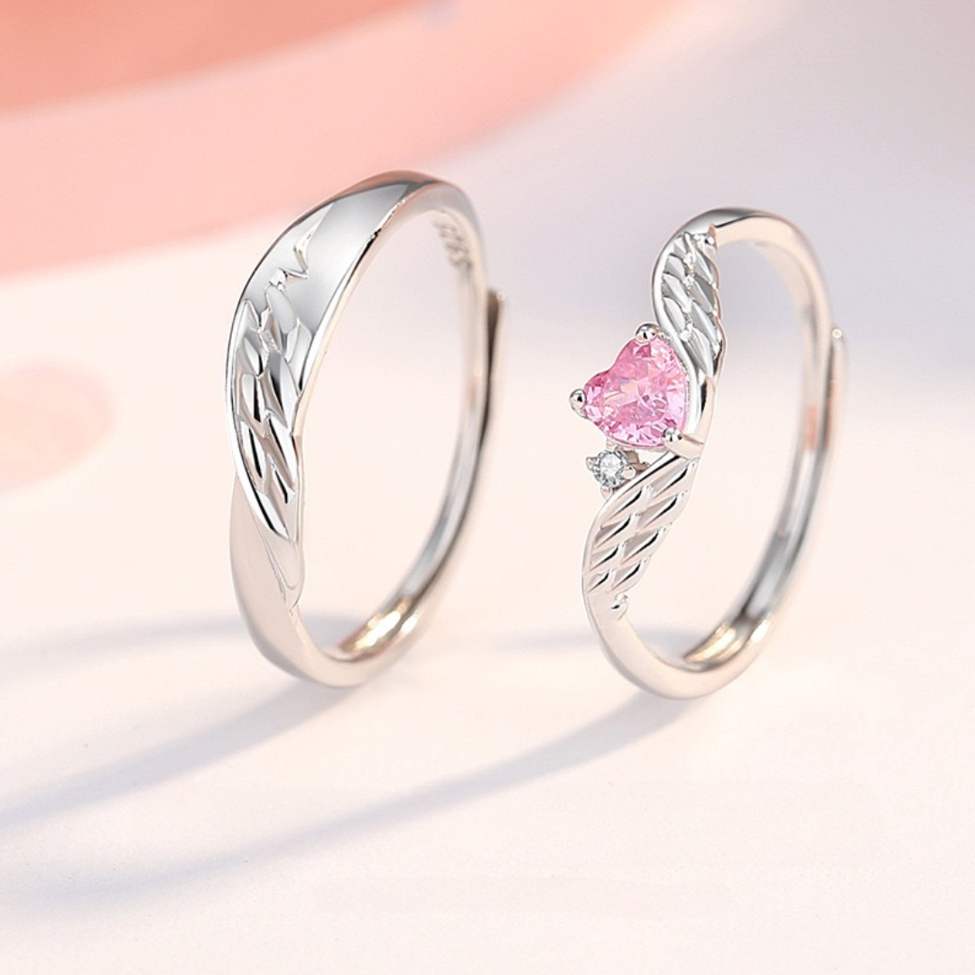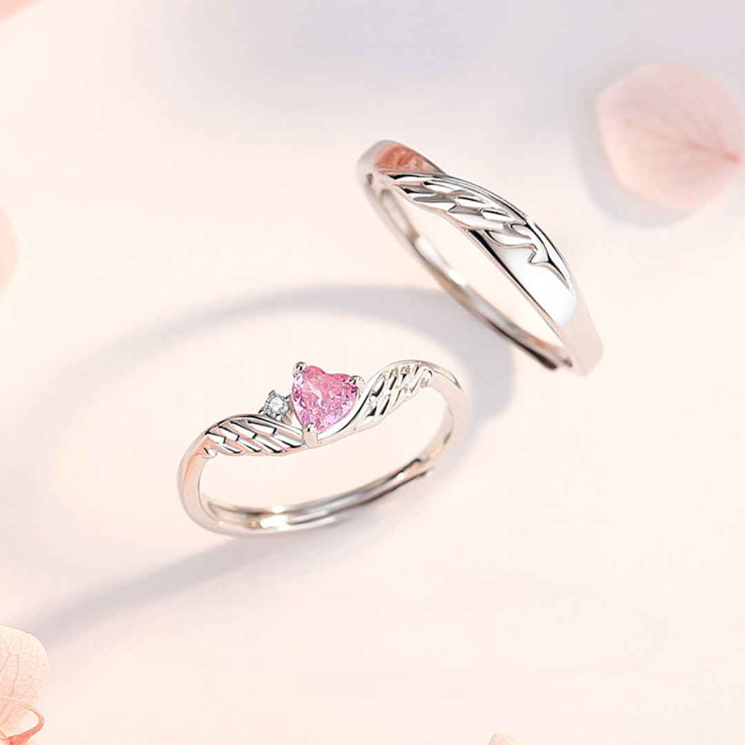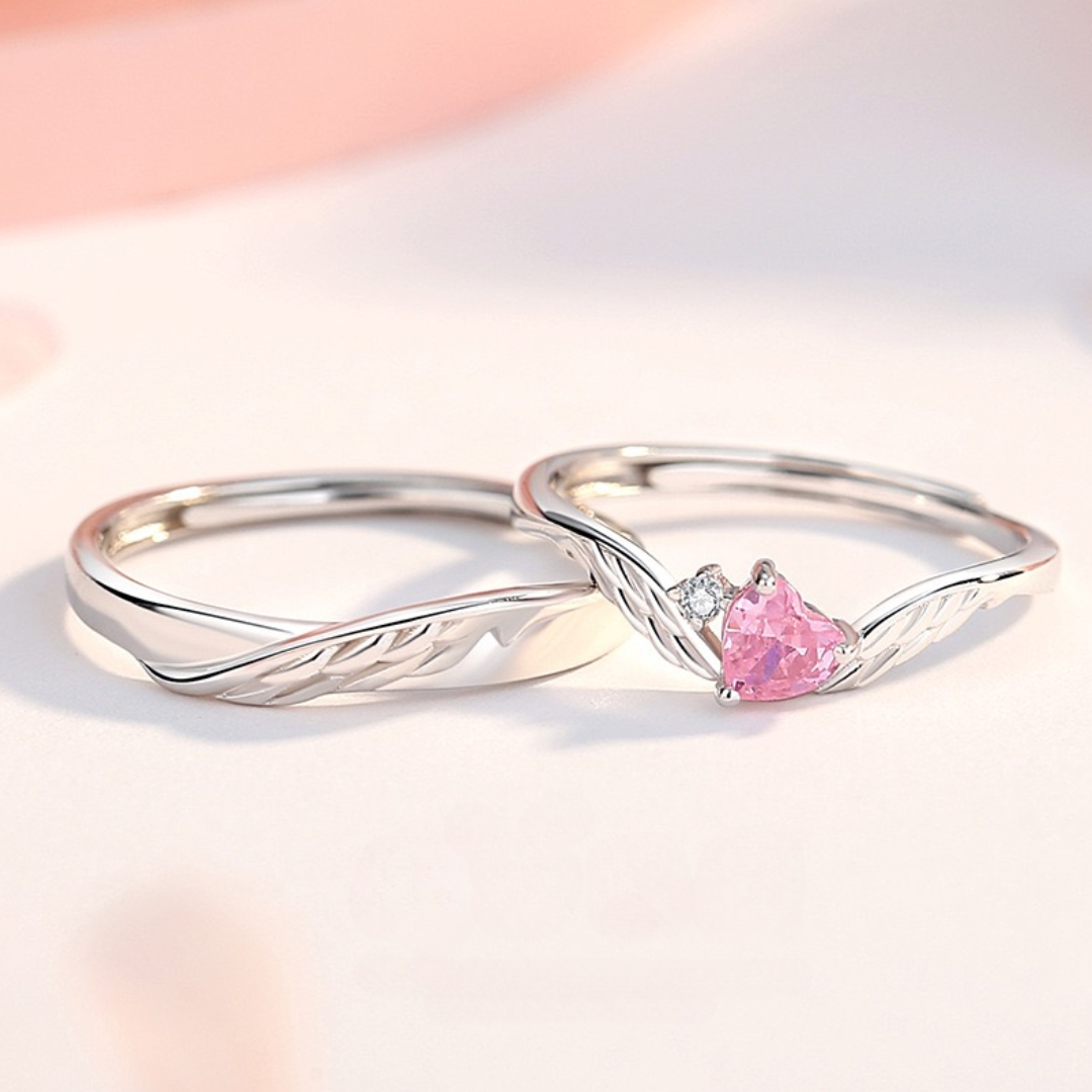 羽のように軽やかなモチーフは、寄り添う想いをやさしく包み込む。 中央にきらめくピンクのハートは、出会いの奇跡と変わらぬ愛を映し出し、見るたびに心を温めてくれる。特別な日も、何気ない日常も、この輝きがふたりの物語をより鮮やかに彩ります。