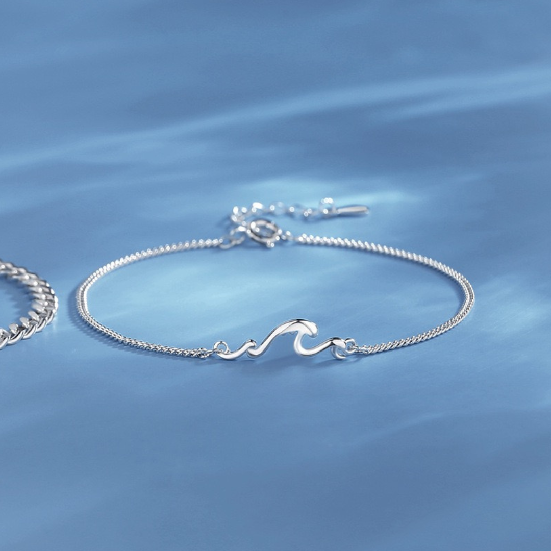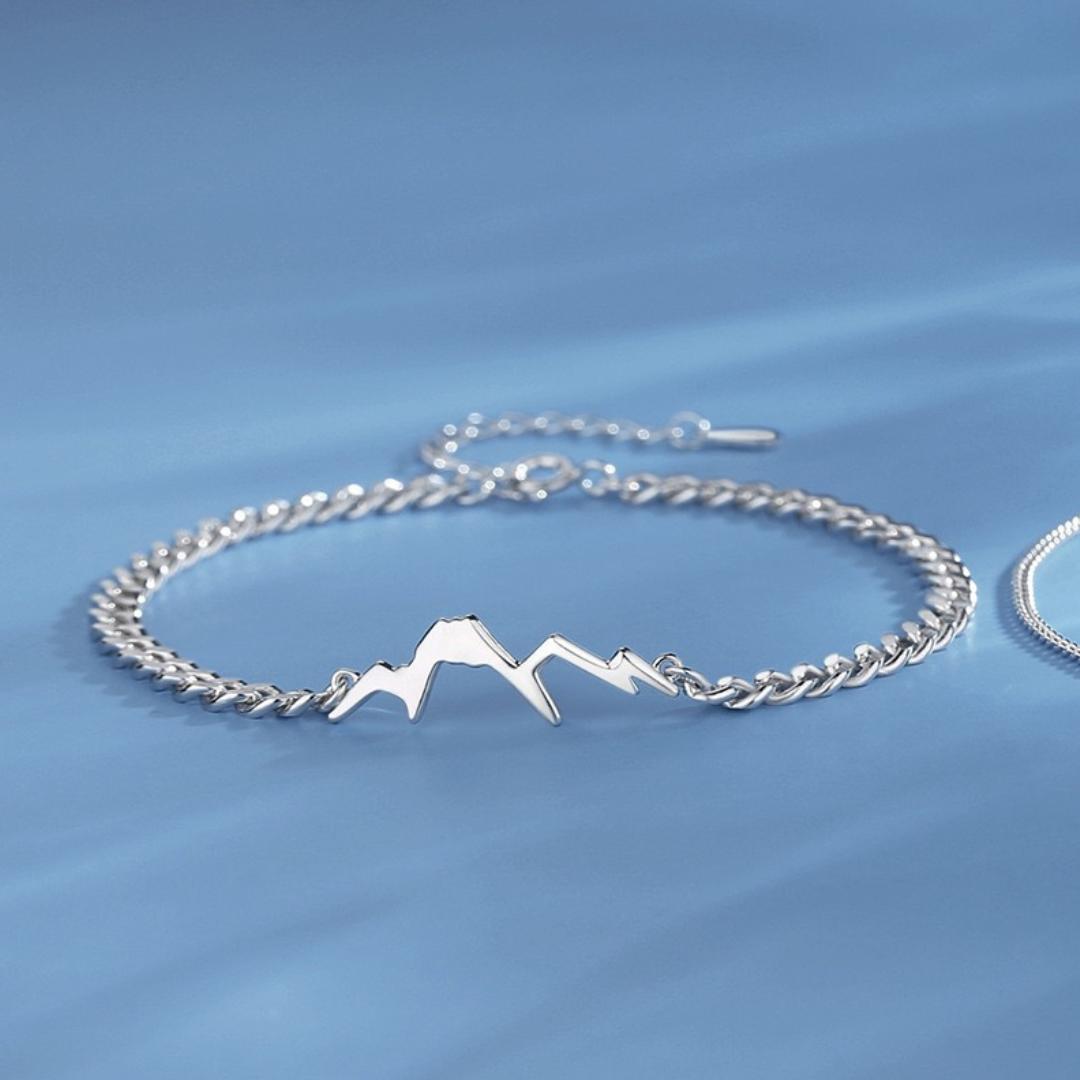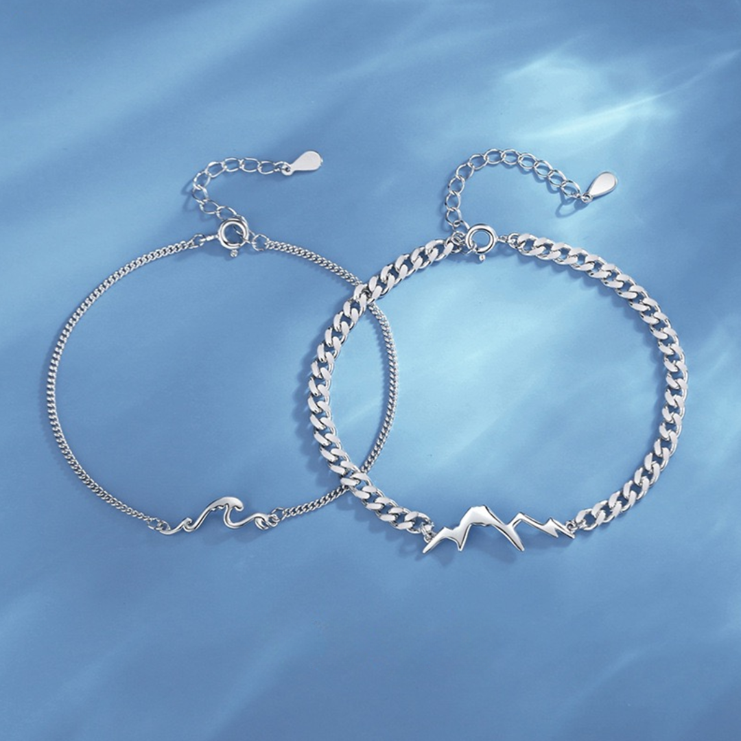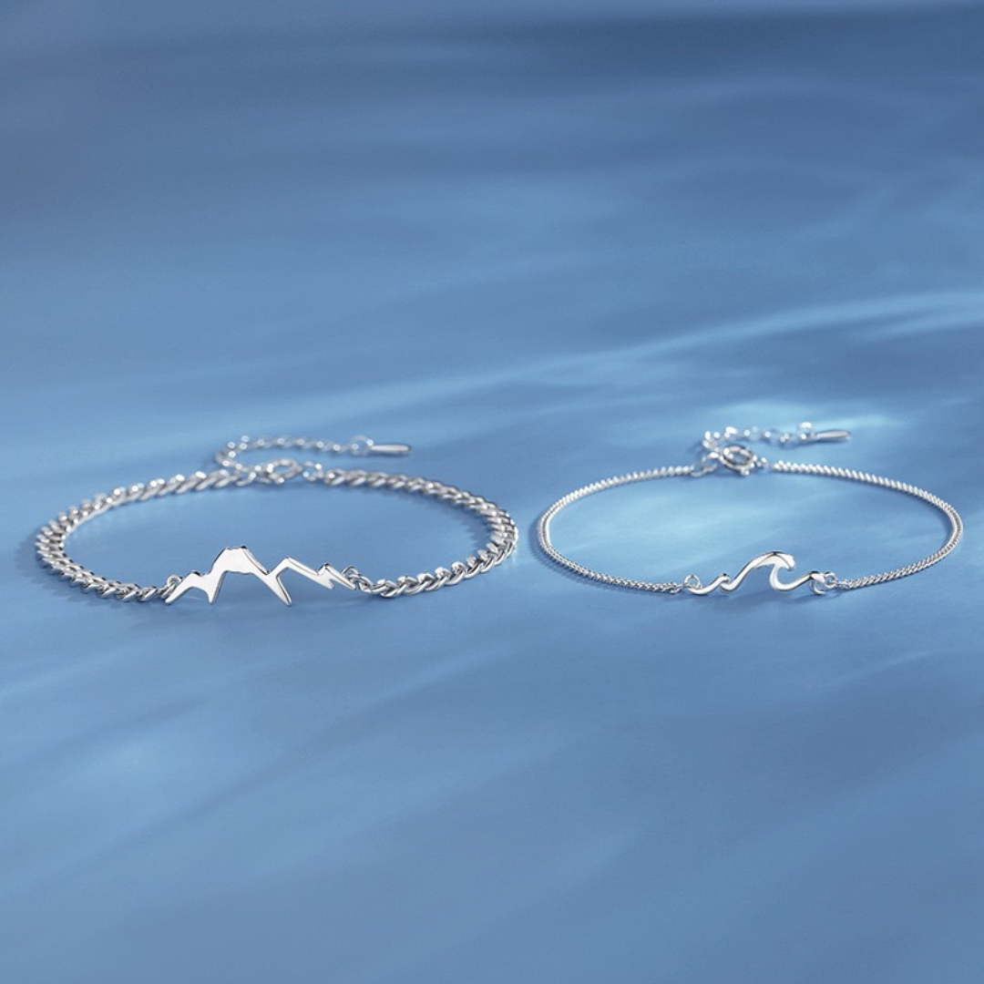 山は揺るがぬ想いを、海は果てしない広がりを。ふたりの誓いは、山を越え海を渡っても揺るがない。どんなに遠く離れていても、このデザインが手首で光るたび、心はひとつに結ばれる。山と海が出会うように、あなたと私も永遠に寄り添う――。