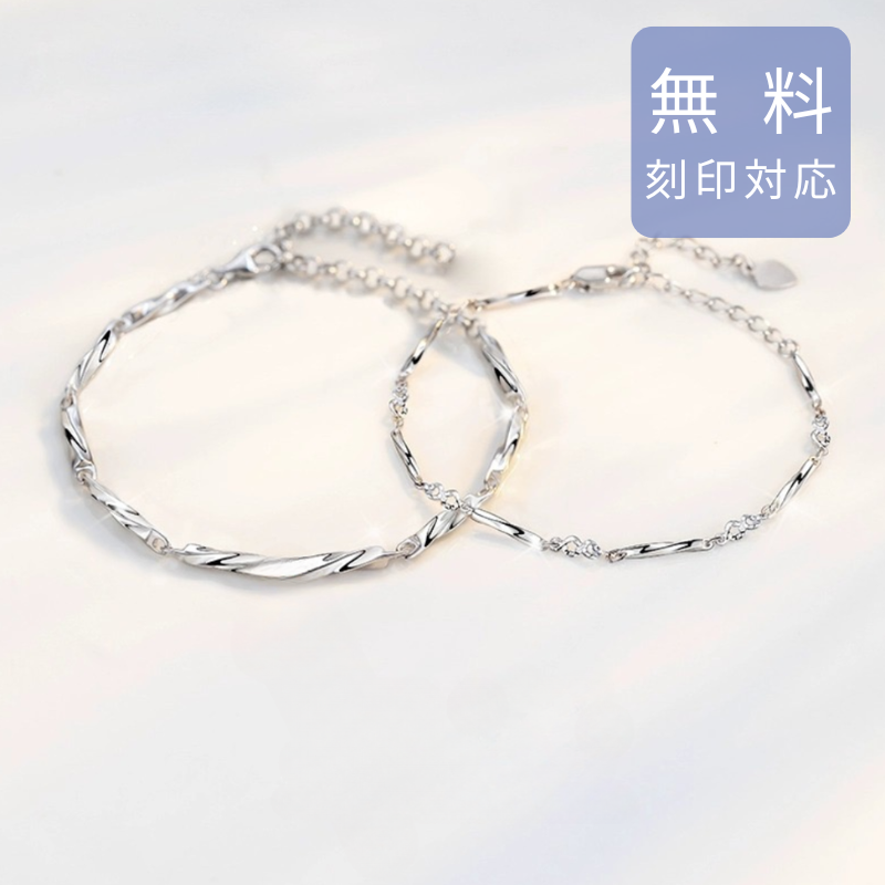 星の瞬きを思わせる繊細なカットと、月のようにやわらかく光るデザイン。派手さはないのに、手首にそっと寄り添い、ふたりの日常に静かなぬくもりを添えてくれるペアブレスレットです。