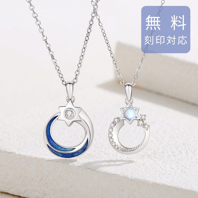 果てしない宇宙の中で、いつもあなたのために輝く星がある。三日月と星々が重なり合い、永遠の守護を象徴する。身につけた瞬間、まるで銀河を胸に抱くように、愛とロマンが、いつまでもふたりの間をめぐり続ける。