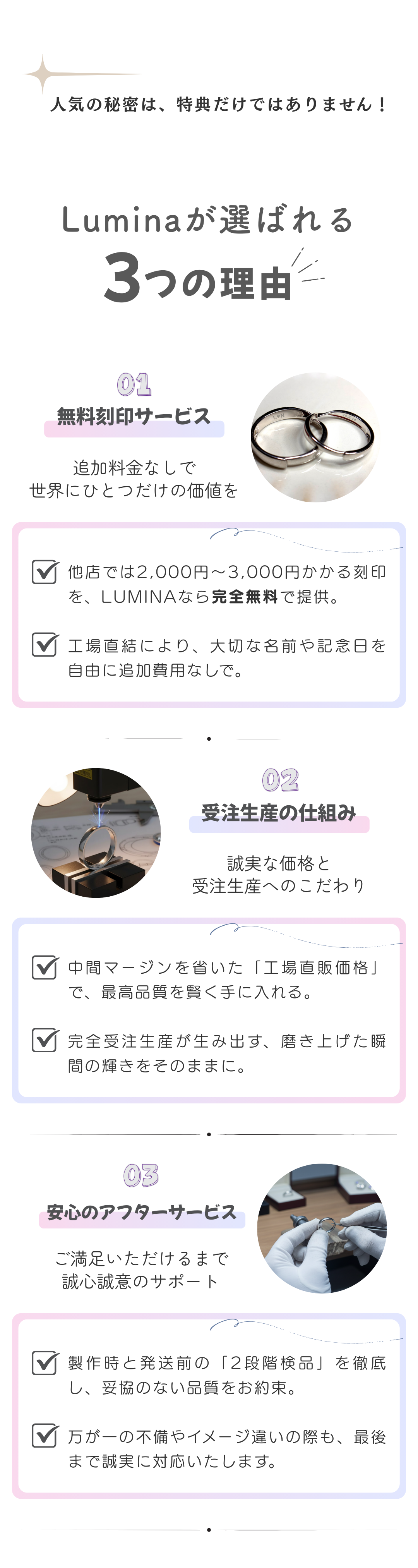 通常は有料オプションとなる刻印サービスを、Luminaでは完全無料でご提供いたします。