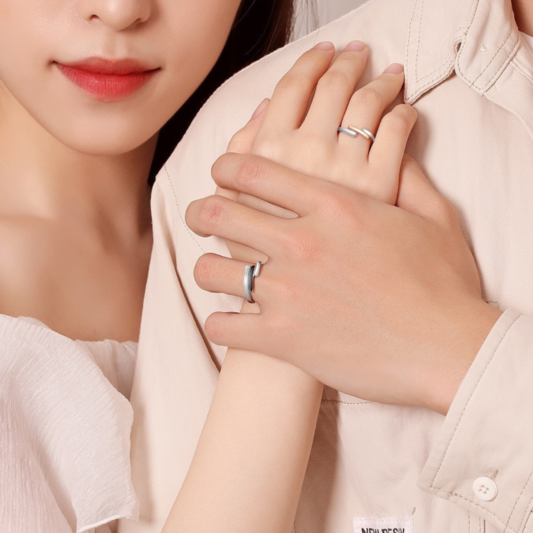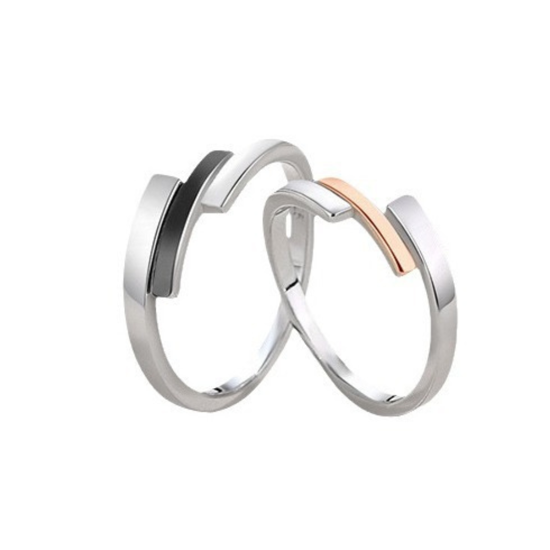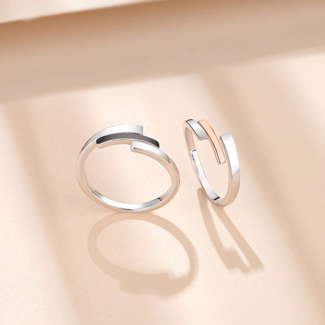 シンプルなシルバーのリングに、片方はブラック、もう片方はピンクゴールドのアクセント。形は同じでも色が違う――“違うふたりだからこそ、並ぶと美しい”という想いを込めたペアリングです。装飾を抑えたデザインだから、飽きずに長く身につけられ、日常の中にそっと寄り添います。