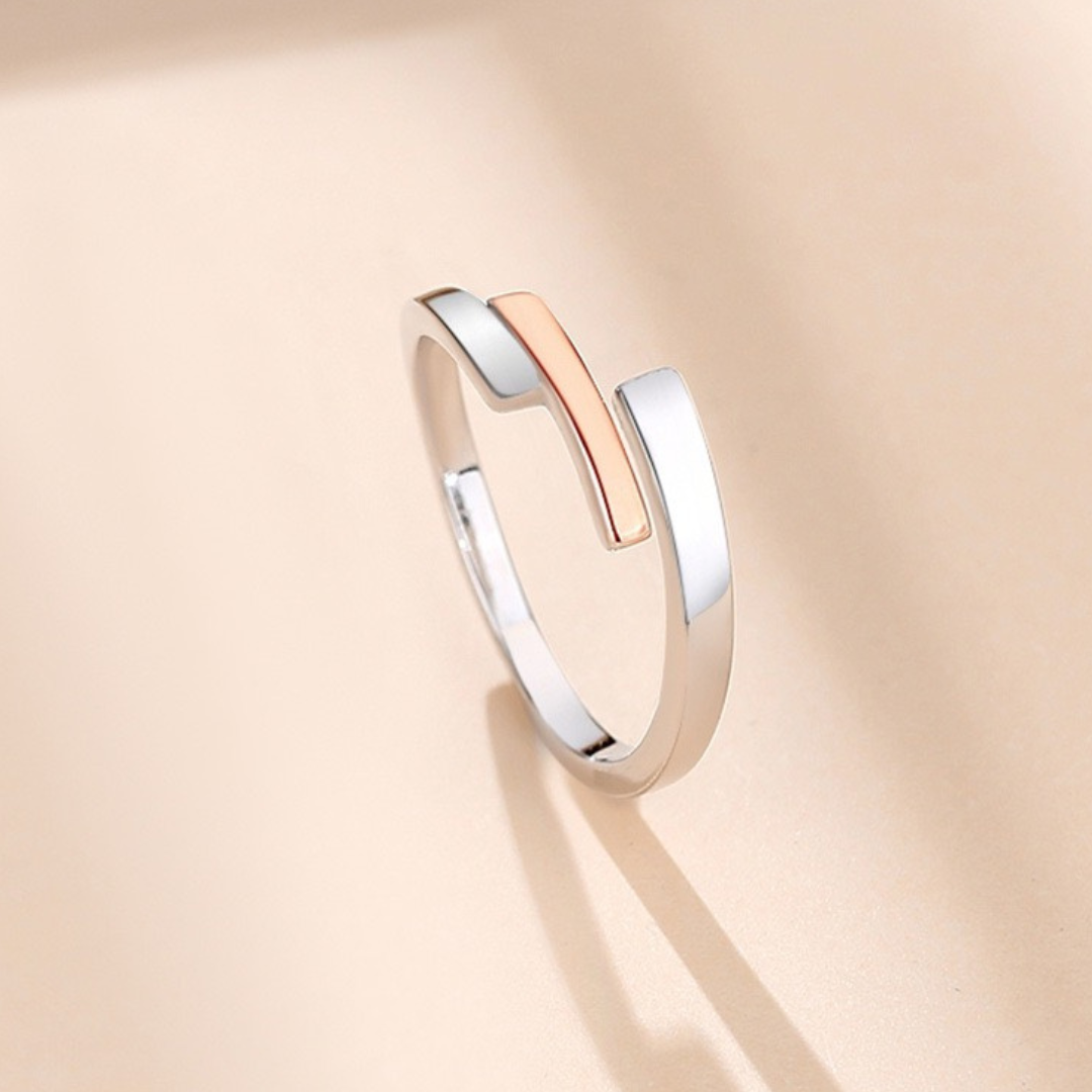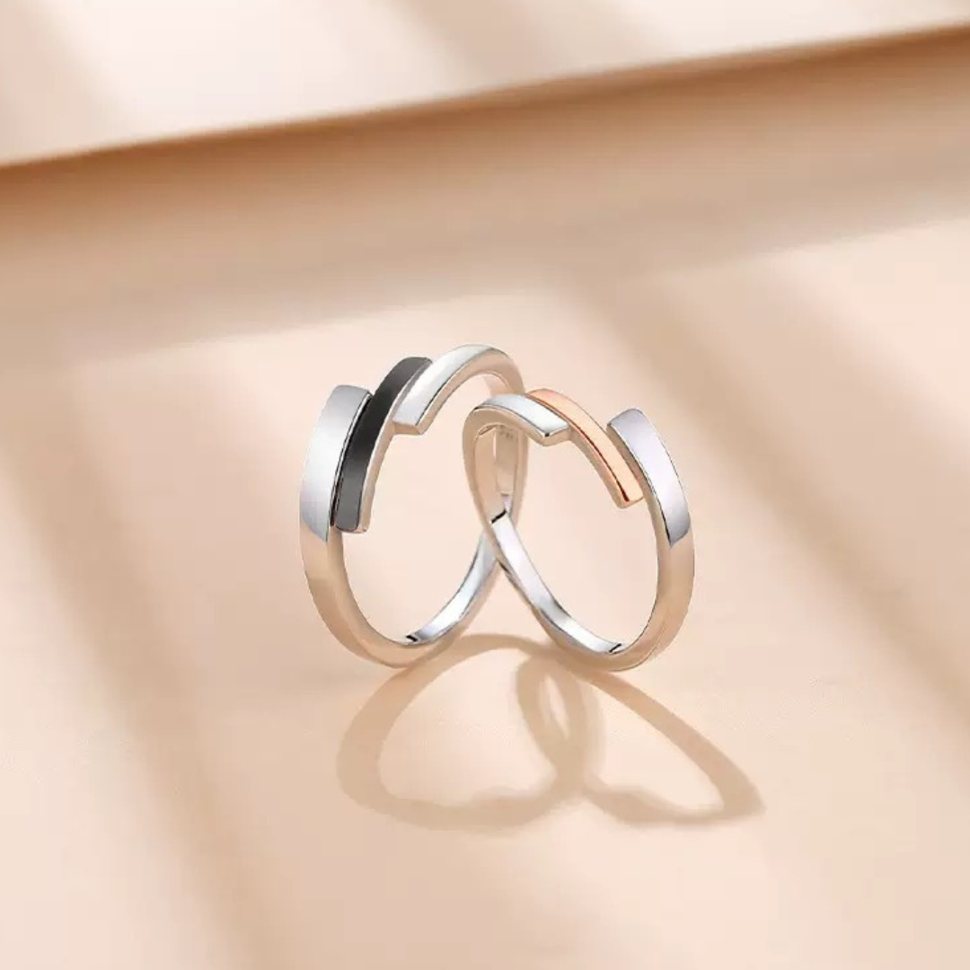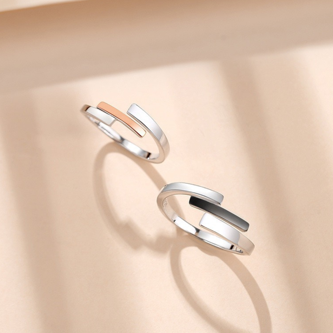 シンプルなシルバーのリングに、片方はブラック、もう片方はピンクゴールドのアクセント。形は同じでも色が違う――“違うふたりだからこそ、並ぶと美しい”という想いを込めたペアリングです。装飾を抑えたデザインだから、飽きずに長く身につけられ、日常の中にそっと寄り添います。