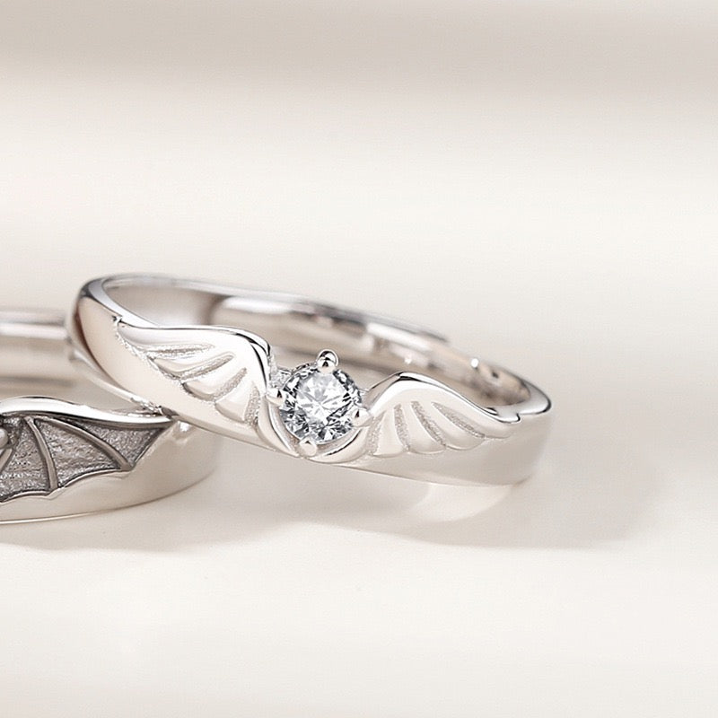 - 片方は天使の羽、片方は悪魔の翼。異なる造形が互いを引き立てるデザイン。